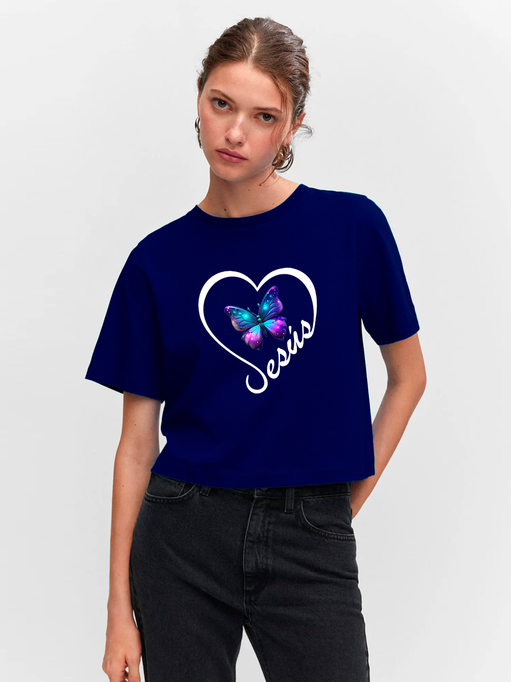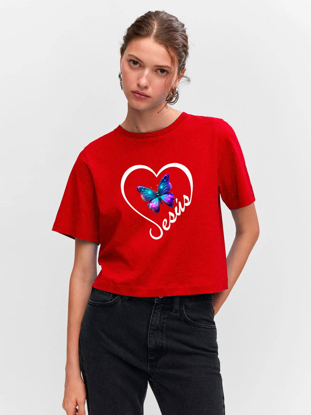 T-shirt Cruz Sagrada Luz y Vida con Corazón Ardiente